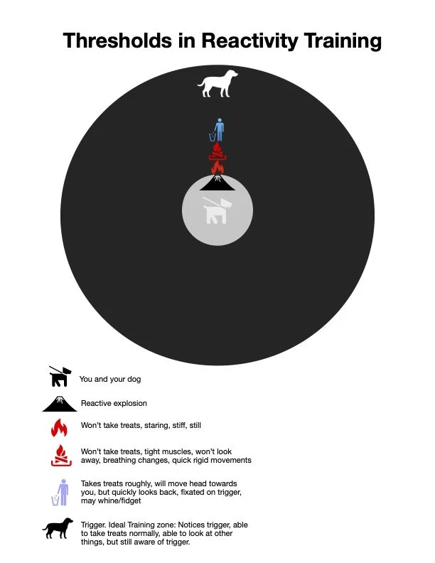 What does “threshold” mean. Your dog’s threshold means the distance in which you no longer are able to control their response to the trigger. So once the triggers gets inside your dog’s perceived personal space bubble they will react to drive the trigger away, or if your dog’s reactivity is based on frustration and over arousal and excitement the distance of which they just can’t keep it together.